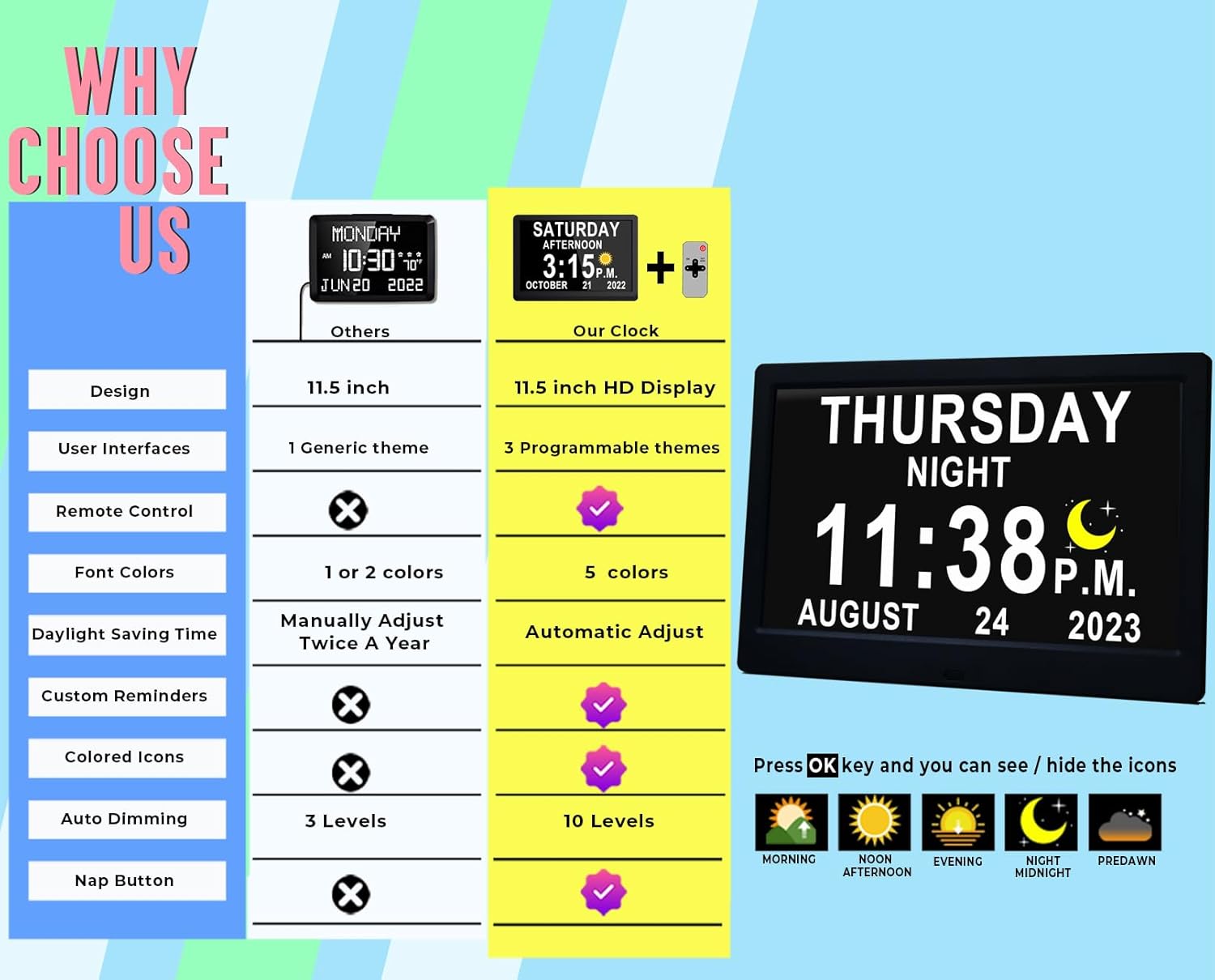 11.5-Inch Digital Calendar Day Clock with 19 Reminders – Claryon