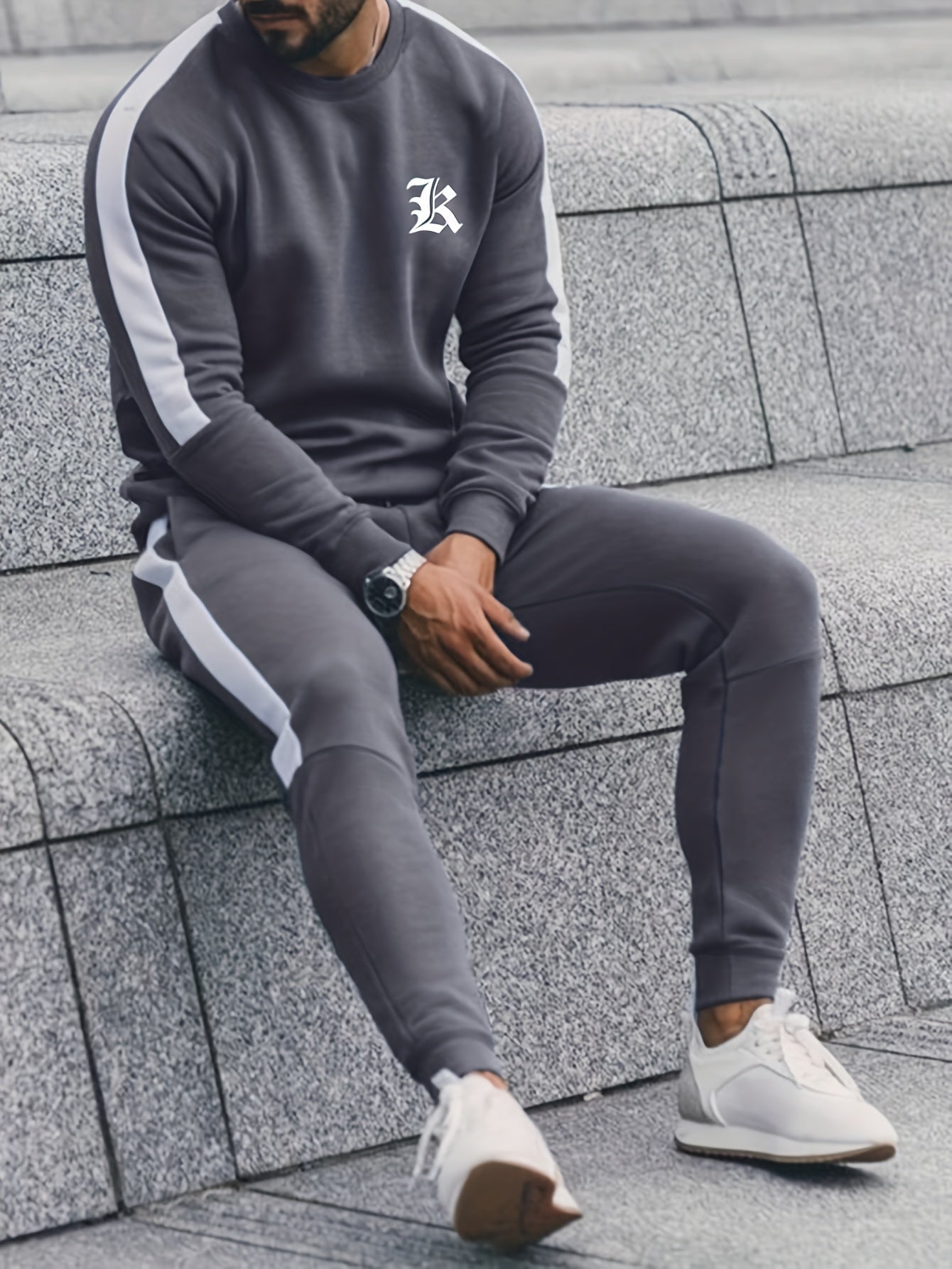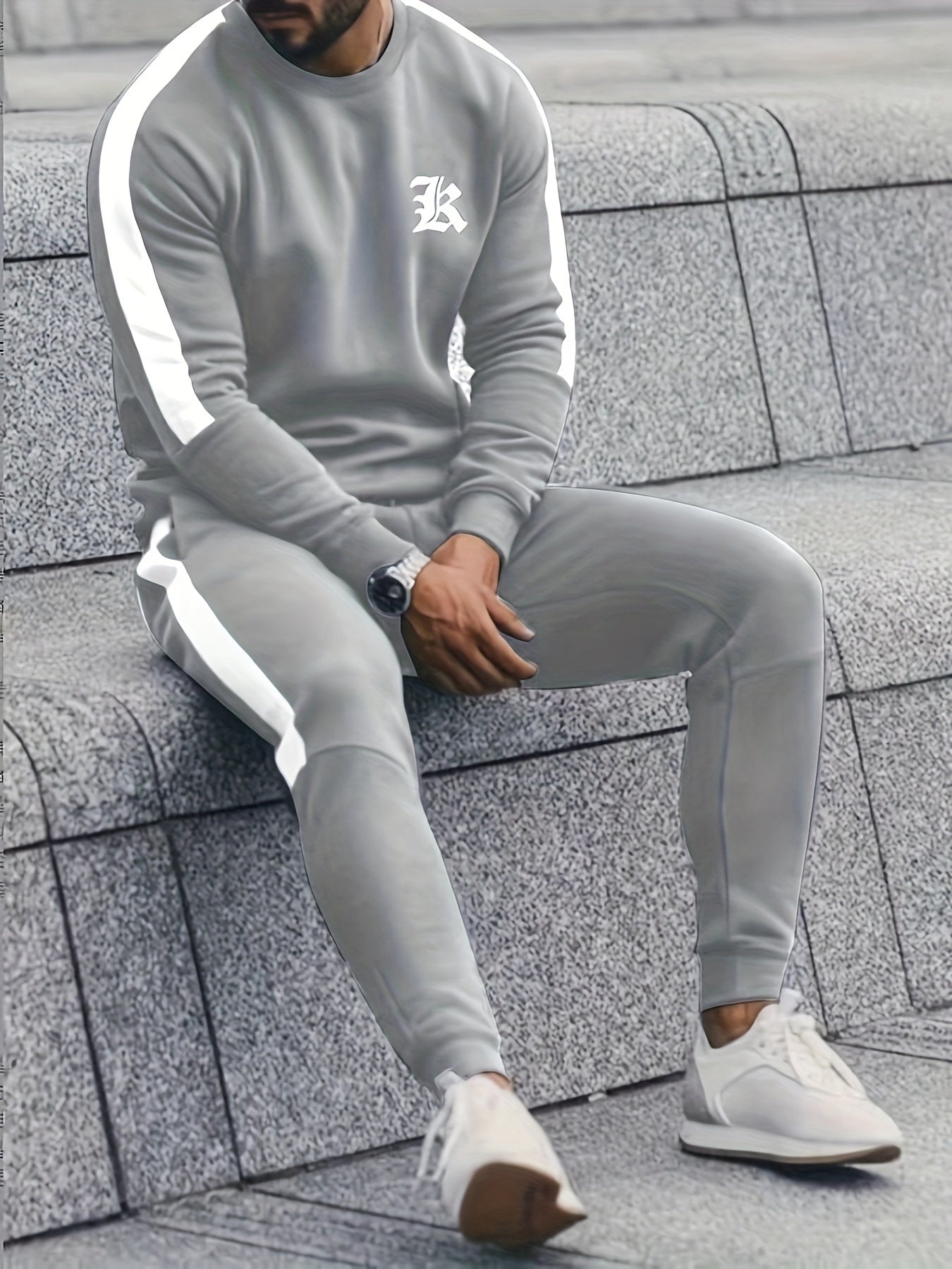 Our Elias sports set is a stylish and comfortable choice for men, designed for active and casual wear during spring and autumn. This 2-piece set includes a round-neck, long-sleeve sweatshirt paired with drawstring jogger pants. The modern colour block design adds a trendy touch, while the high-quality fabric ensures maximum comfort and durability.
