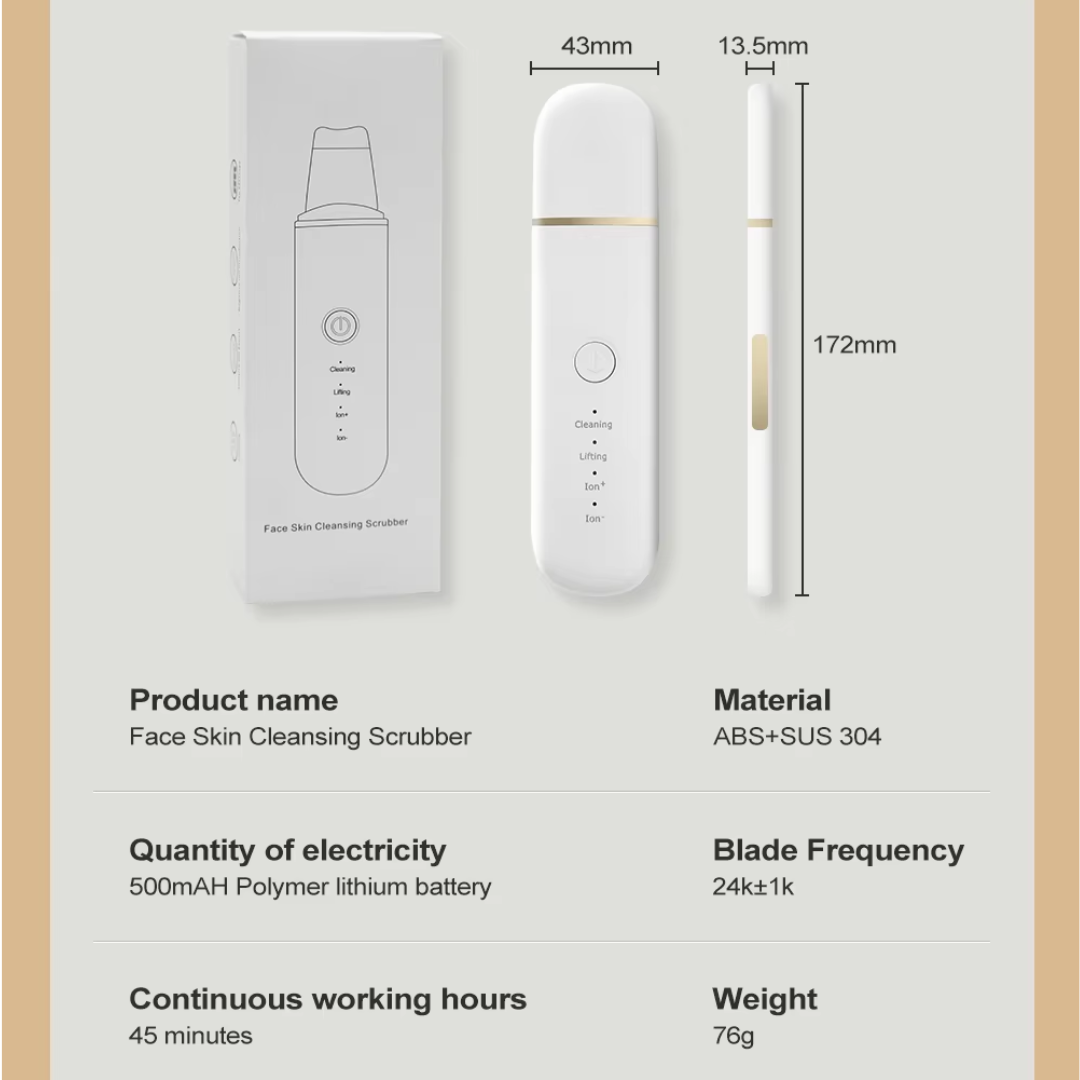 Creëer een spa-achtige gezichtsbehandeling thuis met deze Diepe Reiniging Huid Scrubber. Ontworpen om mee-eters te verwijderen, poriën te reinigen en dode huidcellen te exfoliëren, biedt dit krachtige maar zachte hulpmiddel een complete gezichtsbehandeling. De ultrasone technologie zorgt voor diepe reiniging, terwijl de spatelvorm precisie biedt voor alle delen van je gezicht.