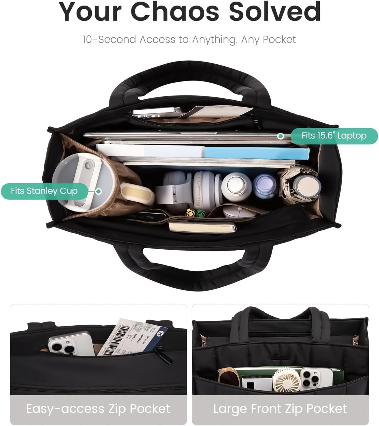 - Fits laptops between 13–15.6 inches, plus tablets and folders.