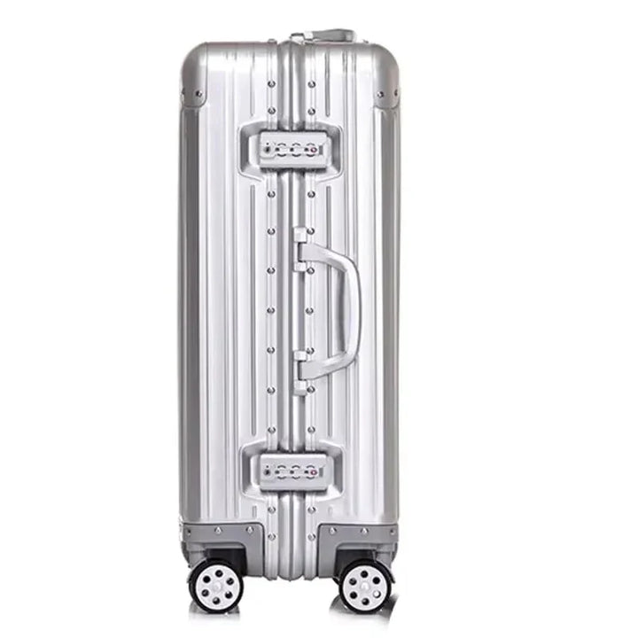With the Ljubljana, you travel uncompromisingly stylish and safe: This high-quality suitcase made from 100% aluminium-magnesium alloy offers maximum stability and an elegant appearance. The sturdy metal optimally protects your luggage, while quiet 360° spinner wheels ensure the highest travel comfort. The Ljubljana is available in four sizes – ideal for everything from short business trips to extended holiday journeys.