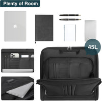 - 45L capacity fits suits, shirts, dresses, toiletries and documents