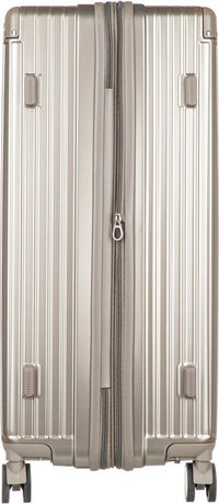 - Features: TSA combination lock, USB charging port, cup holder, clothes hook, expandable middle section, 360° spinner wheels, side bumpers