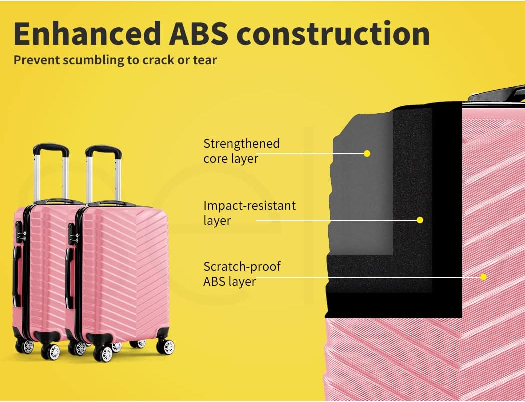 This 50 cm carry-on luggage is crafted from durable ABS material that offers strength without unnecessary weight. Equipped with smooth 360° dual spinner wheels, it moves effortlessly through busy airports and terminals. The telescopic aluminium handle and reinforced corner guards add to its practicality, while the top and side carry handles provide flexible carrying options. Ideal for short trips or weekend getaways, this suitcase combines secure storage with a sleek design.