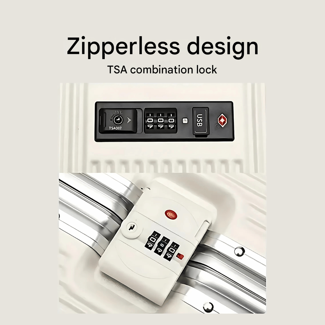 - Zipless Design: Aluminium frame with TSA lock for maximum security and lightning-fast access.