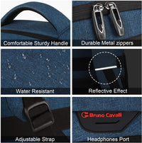 - Material: Water-resistant polyester with metal zippers