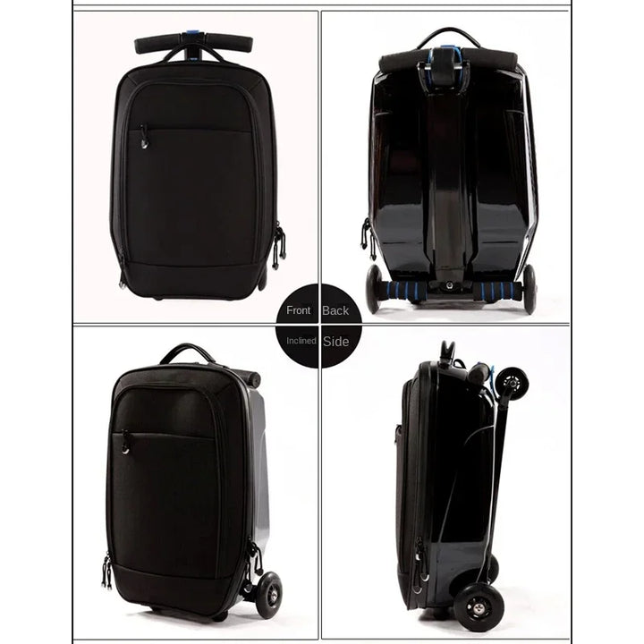 • Design: Scooter suitcase with a foldable footboard