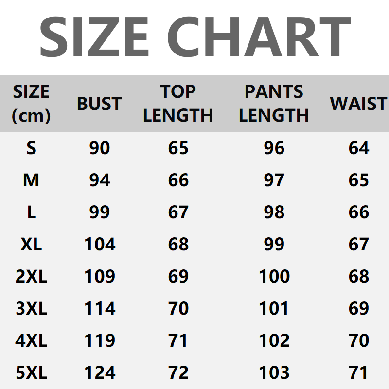 - Sizes: S, M, L, XL, 2XL, 3XL, 4XL, 5XL