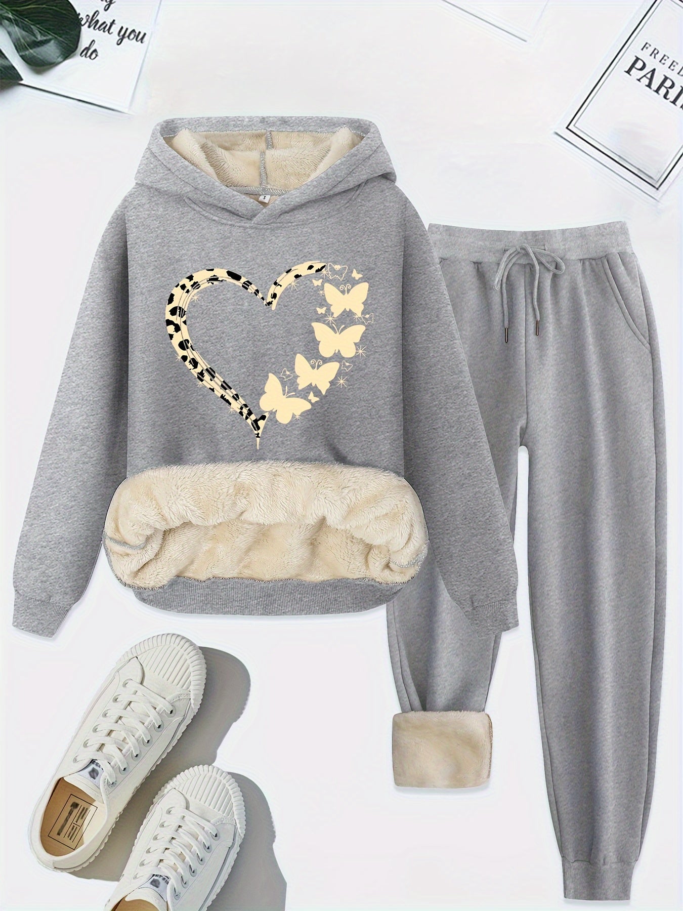 Discover the Bella warm two-piece set for women – a perfect blend of comfort and style for autumn and winter. This set features a long-sleeve hoodie with a drawstring and matching pants, both made from soft, warm fabric. The cute heart print adds a playful touch to this cosy outfit, ideal for both indoor and outdoor wear.