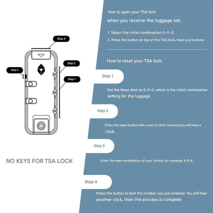 - Lock: TSA combination lock