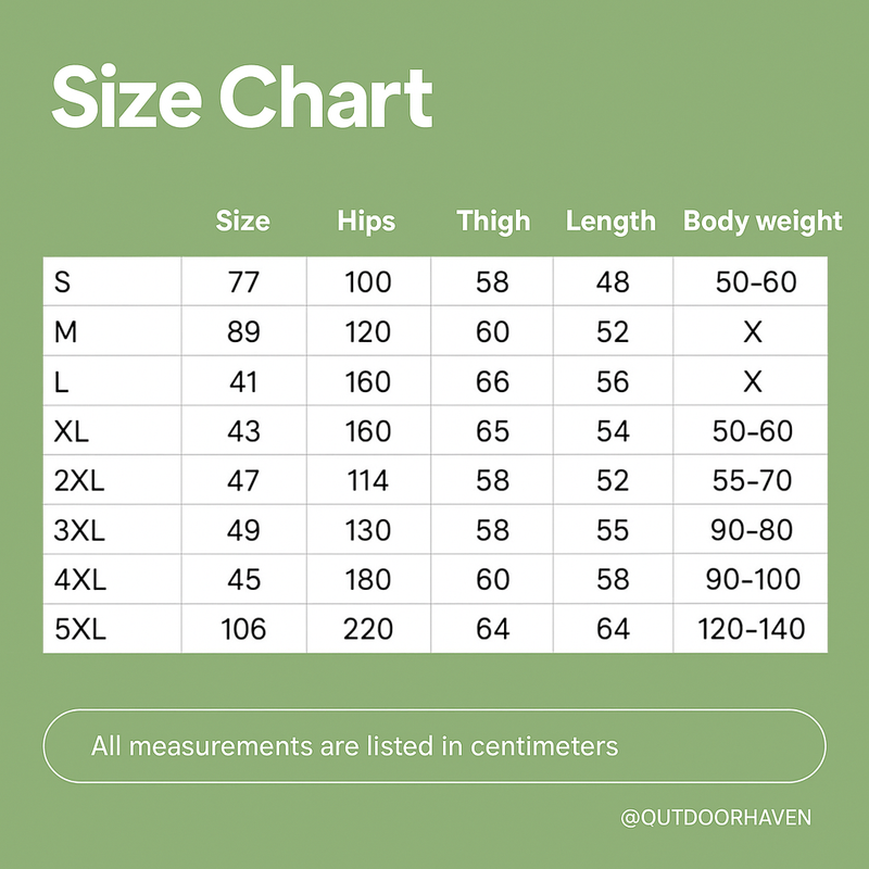 Size Hip Thigh Length Weight (kg)